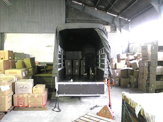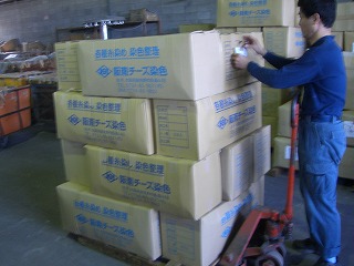 積み込み前の、ラベル確認作業 |