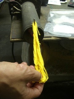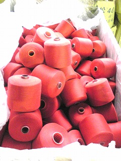 同じくワインレッドに染色された綿糸 |
